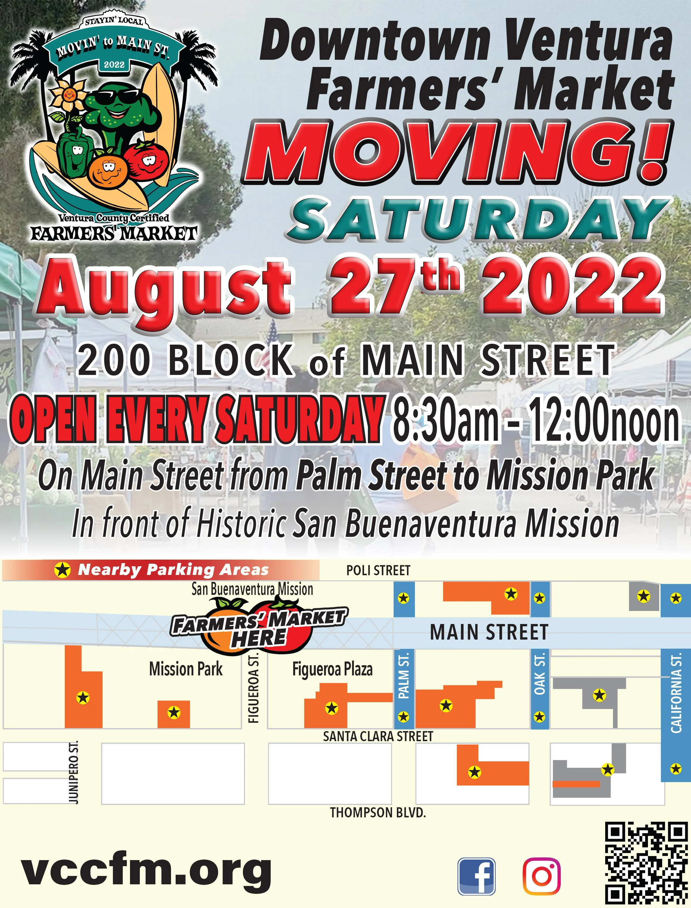 Experience the exciting new and improved location of the Downtown Ventura farmers’ market along the 200 block of East Main street!