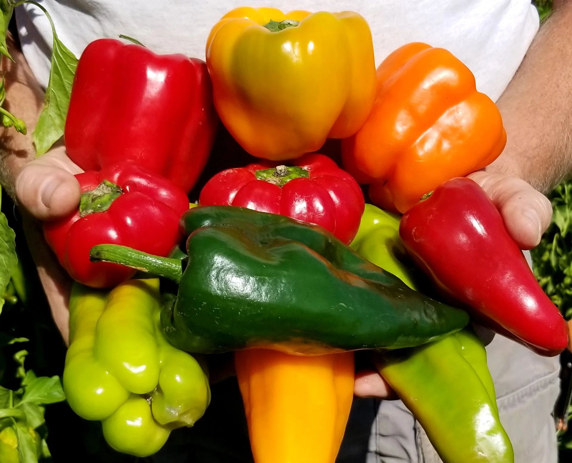 Our sweet pepper varieties include Sweet Hungarian, Pimento, Italian Frying Cubanelle, Lipstick, Red Bell, Orange Bell, and Yellow Bell.